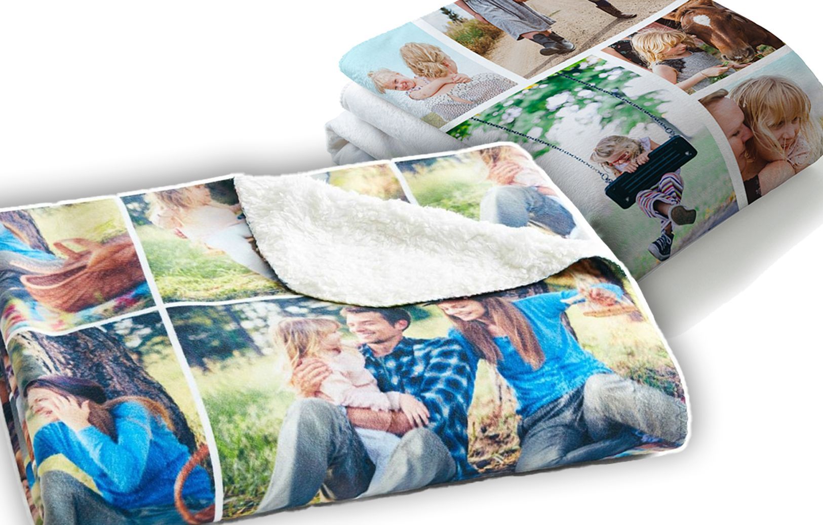 Wrap yourself in warmth and memories with your photos on a cozy blanket—available in sherpa fleece or smooth mink touch finishes.