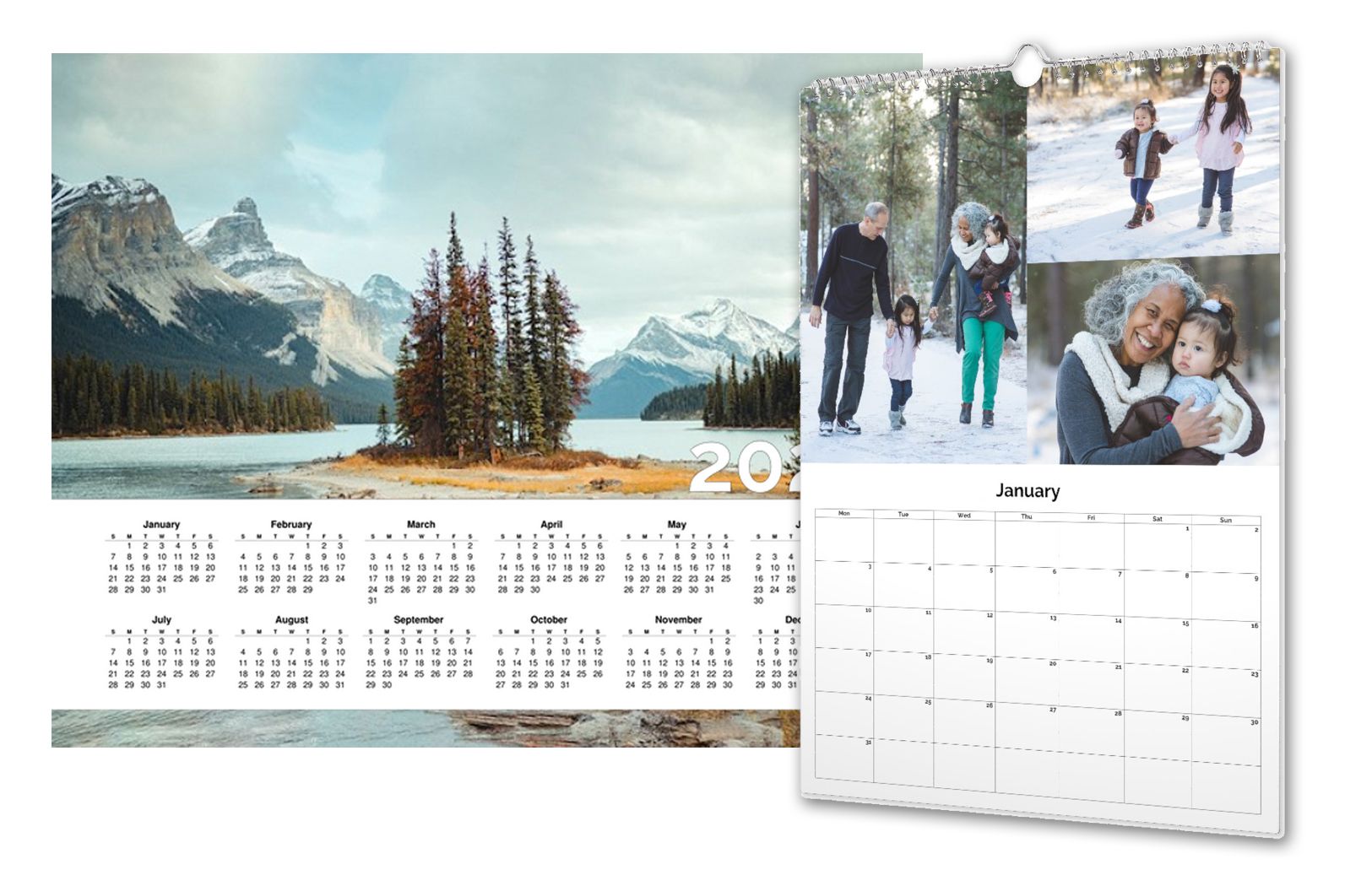 Create a calendar that fits your style! Choose from two sizes or keep it simple with a single-page desk top version featuring your favourite photos.