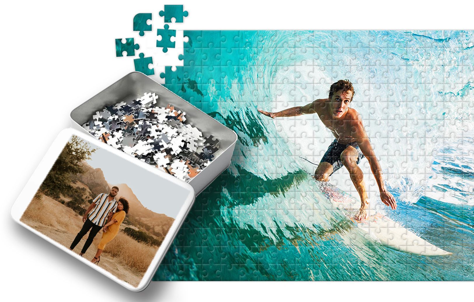 Turn your photo into a fun challenge with custom puzzles—ranging from 30-piece wooden sets for kids to 1500-piece brain teasers for adults.