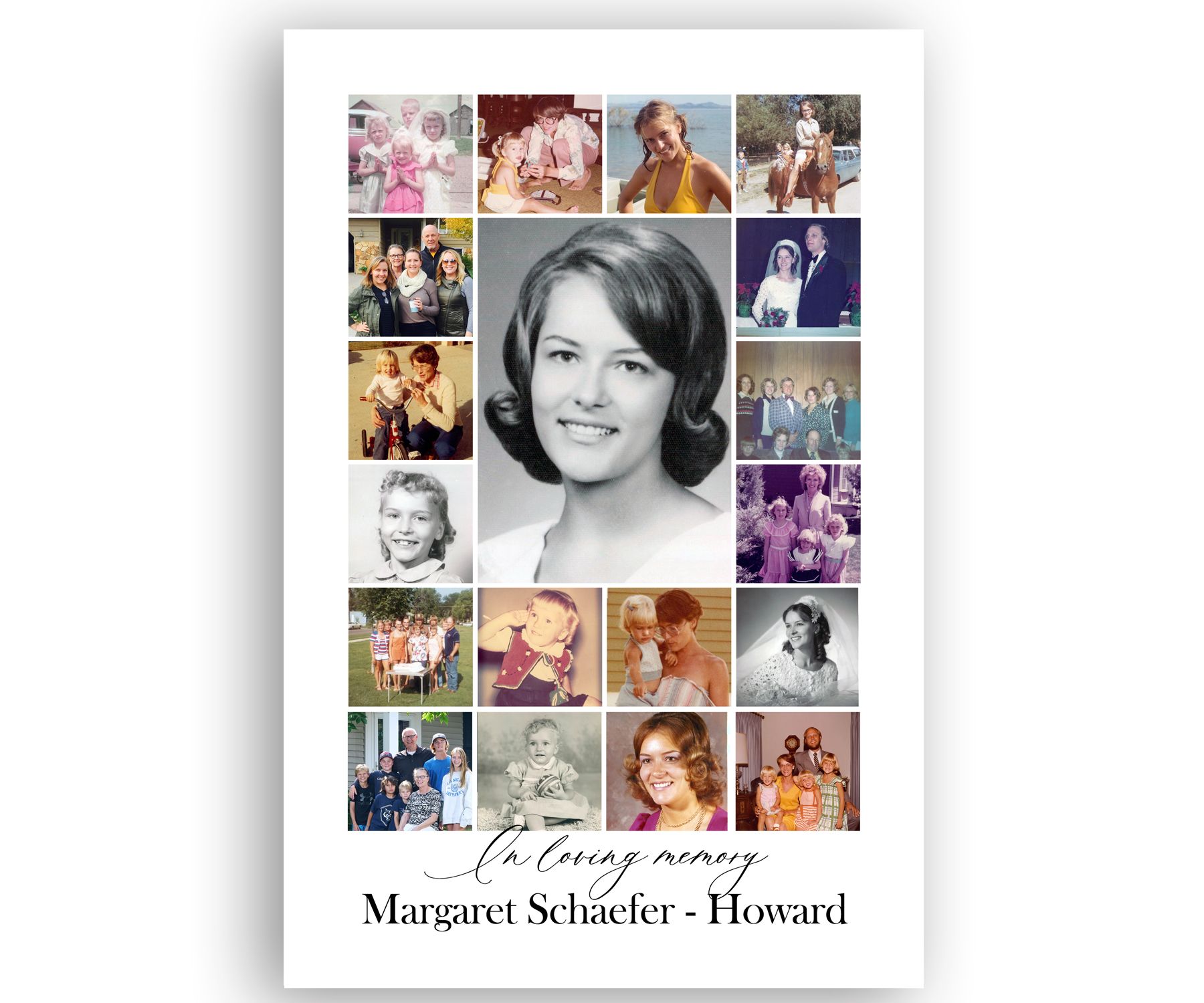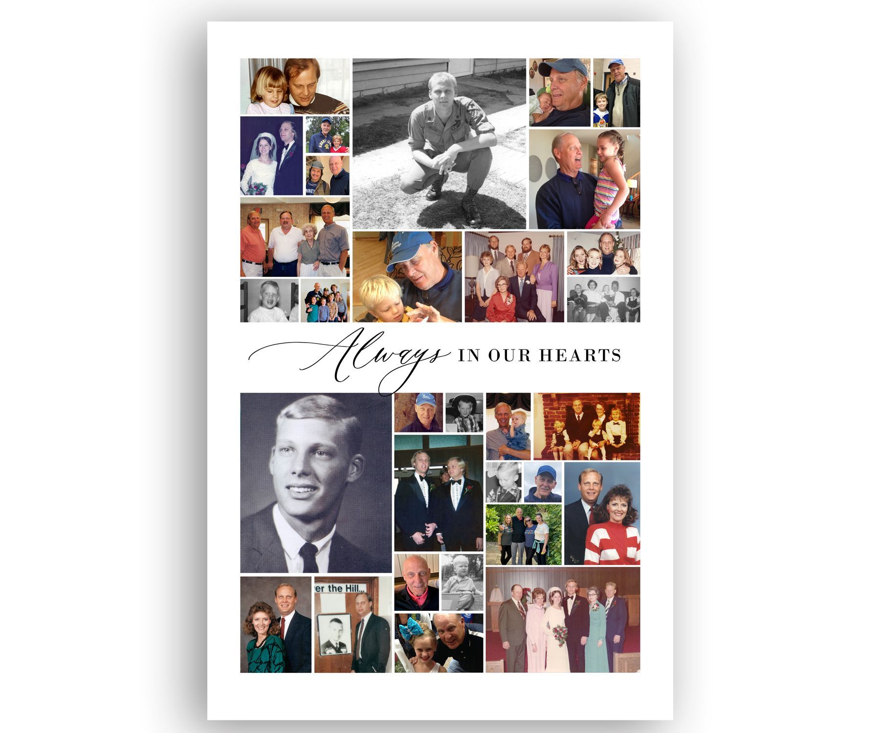 Honour a loved one with a photo collage. Whether it's a tribute of cherished memories, milestones, or moments—and we’ll print it with care and precision. Perfect for memorial services, celebrations of life, or keepsake displays.